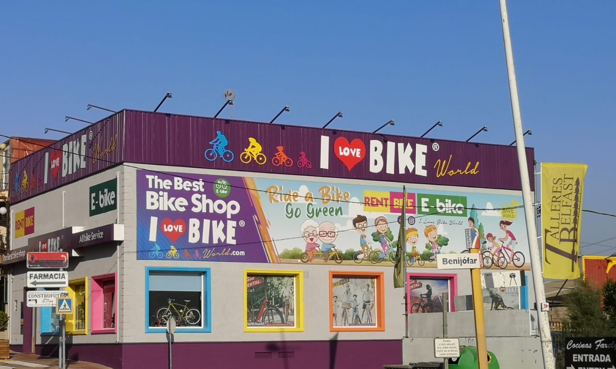 I Love Bike is number 1 in the bicycle shops sector. We have two stores located in La Zenia, Orihuela Costa and Benijofar. Great choice of Electric Bikes. If you’re looking to buy a bike, we can offer you new or second hand bikes: MTB, E-bikes, City bikes, Road bikes, Trekking bikes, Hybrids, Gravel, BMX, Tricycles, scooters, junior-bikes, folding bikes, components, parts and accessories. Sale of new bicycles of the best brands: Leader Fox, Shimano, Drag, Santini, Kross …. We offer SERVICE BOSCH motor. Repair workshop: Repair, Assembly and Rent. Hire bike shop.
